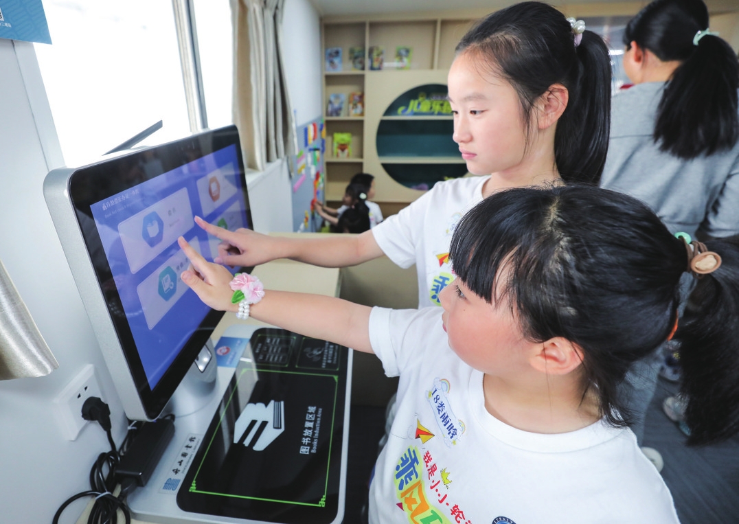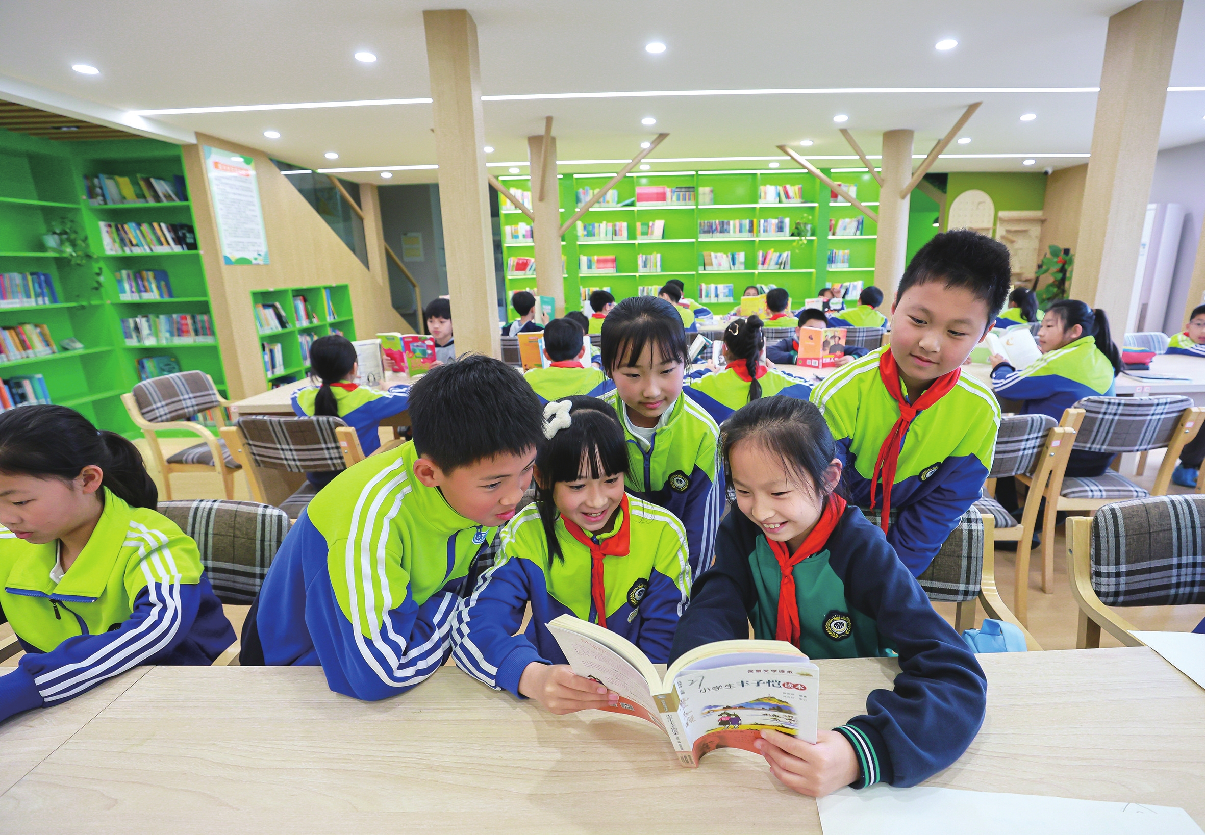 南海实验学校长峙小学校区,孩子们在图书馆畅游书海 图/张磊