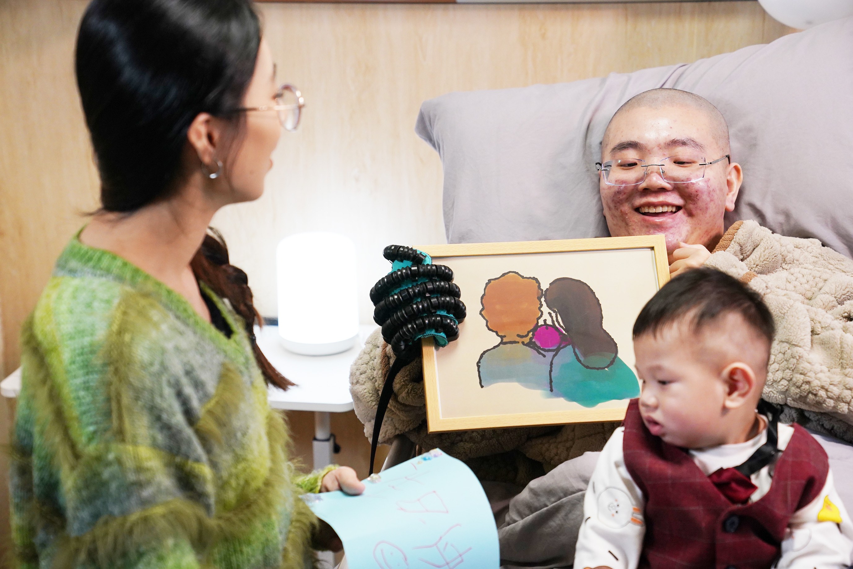 3月28日,邓先生通过脑机接口控制外骨骼将全家福送给家人。