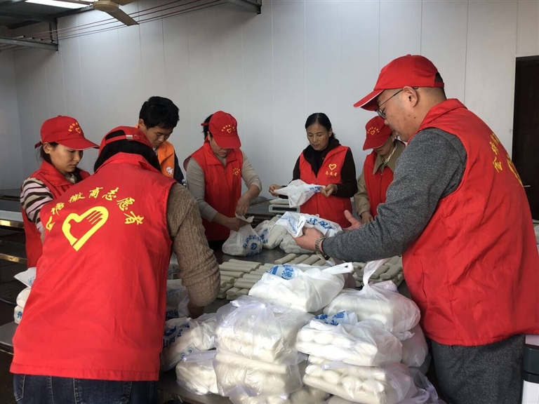 定海区滴水公益服务中心及其下属舟山公益小天使团队的5个微信群,有约3000位学生家长,他们也是金塘老人年糕的“忠粉”,每一年天气转冷,群里的爱心年糕接龙活动也开始了。“家长们特别热心,有主动提出帮忙送年糕的,也有发动亲友团来买的,让我们感到满满的爱心。”王春燕说。