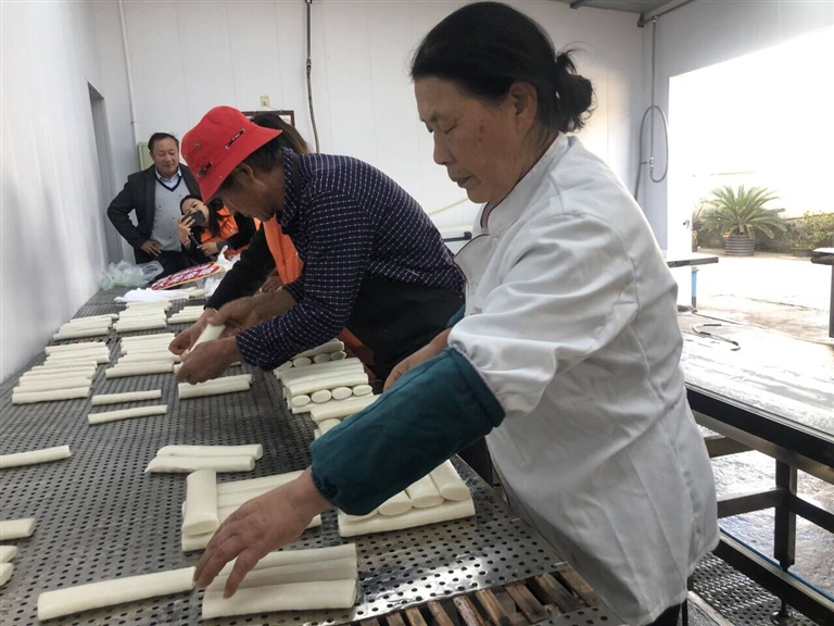 金塘徽商志愿者协会的志愿者张丽住在大丰村,去年冬天,她和队友们经常到老人家里帮忙做年糕。“我住得近,骑电动车过来15分钟,搭把手方便。在我们安徽老家不兴做年糕,我以前不会,现在磨粉、压粉各个步骤都学会了。”张丽说,只要年糕小作坊开张,她和队友们就过来帮忙。“金塘沥港、山潭等其他地方,有人买年糕,我们也去送货,尽可能帮老人多卖掉一些。”