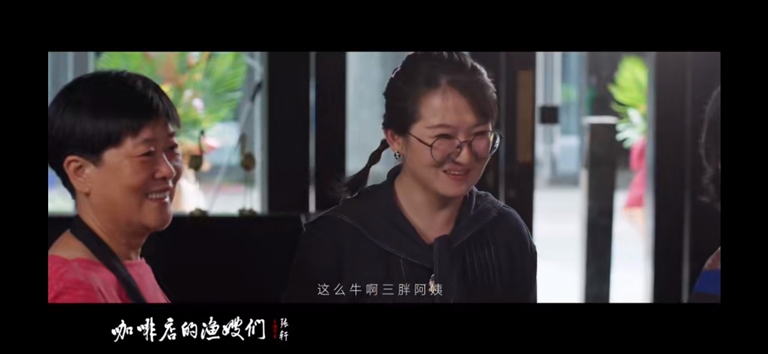 今年开始,我也没让阿姨们过来了,还是有点距离,每天这么来回不是很方便。不过,今年我们在一起拍了部电影,就是阿姨们走进咖啡馆的故事。