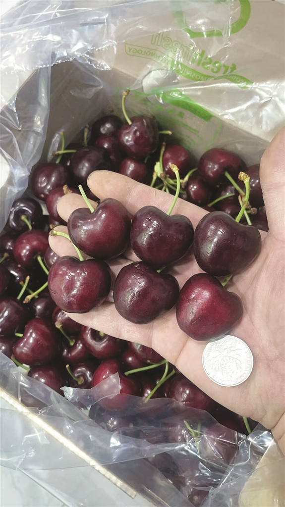 “这次4J的车厘子进了15箱,每箱5公斤,单J的黄车厘子进了4箱,每箱4.4公斤。”他告诉记者,这些都是智利空运来的。店里从上周就开始卖车厘子了,很多老客户都爱吃。