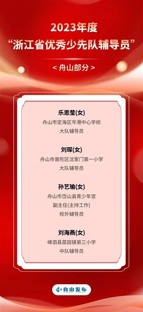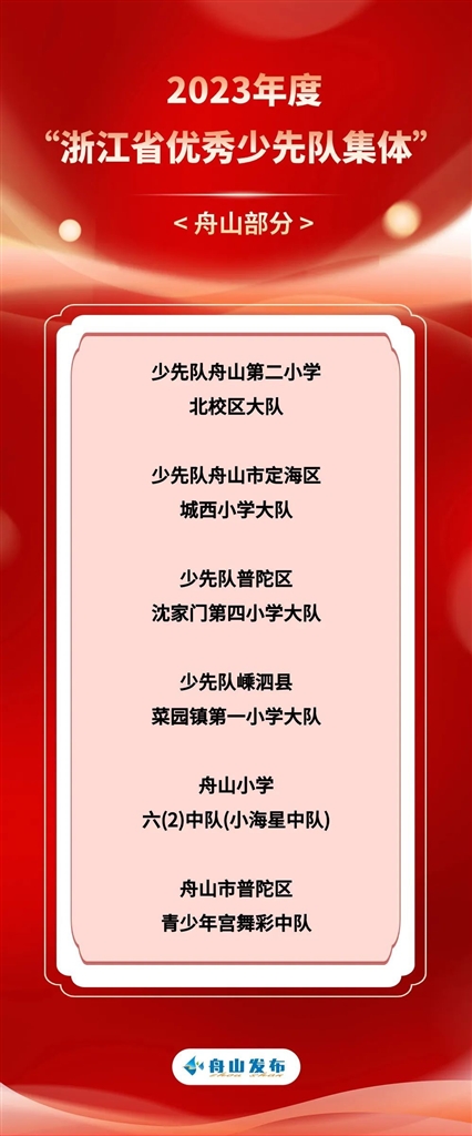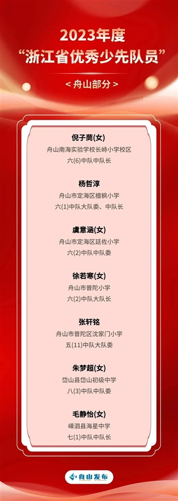 舟山市7名少先队员、4名辅导员、6个少先队集体光荣上榜!
