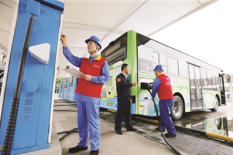 新能源公交车正在充电
