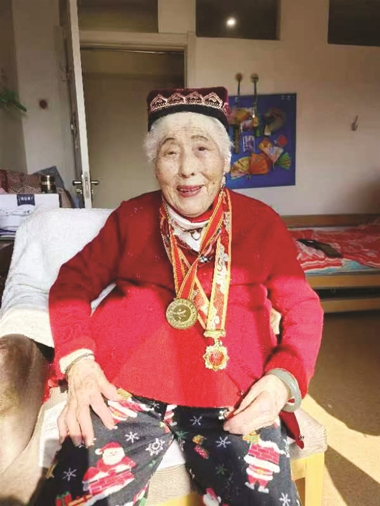夏德懿老人将最珍视的两块纪念章挂在胸前