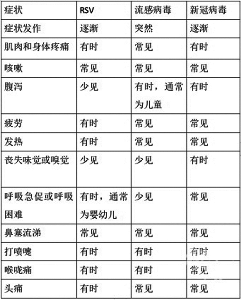 合胞病毒和新冠病毒、流感病毒一样,通过呼吸道传播,引起发热、咳嗽及鼻塞流涕等呼吸道症状,但也有一些区别。