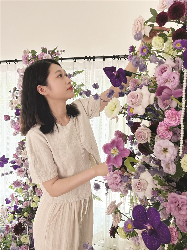 楠星是定海兰慕花艺的一位花艺师,每天坐在店里的工作就是一天的手工劳动加脑力劳动。