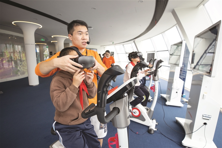 随后,记者在这里亲身体验数种心理学互动体验装置——AI群体情绪互动游戏装置、360°沉浸式冥想空间、脑电赛车……不少参观人员在冥想空间戴上脑电头环,感受一次可视化冥想——随着大家进入冥想状态,屏幕上随风摇曳的蜡烛火苗也随之静止。摘下脑电头环后,不少人感慨,工作后很久没有这么松弛的感觉,非常奇妙,“以前觉得幸福是很抽象的概念,但在科学馆里,幸福变得很具体。”