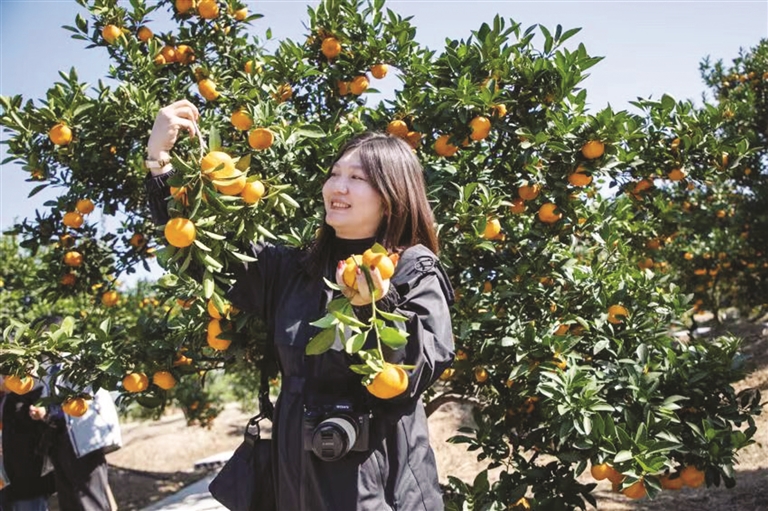 据介绍,橘子成熟后,每天都有游客从四面八方而来,赴一场“甜蜜之约”。丰盈的汁水,甜到了游客的嘴角,也甜到果农的心坎上。今年,黄岩柑橘种植面积约5.4万亩,预计总产量达6.5万吨,销售产值4亿多元,亩均产量有望比去年增加10%。近年来,更多被赋予了文化味的精品蜜橘单个售价在6元多,实现了种植科技化、产业文化化。在黄岩,一颗蜜橘的“鲜甜”富裕一方百姓。