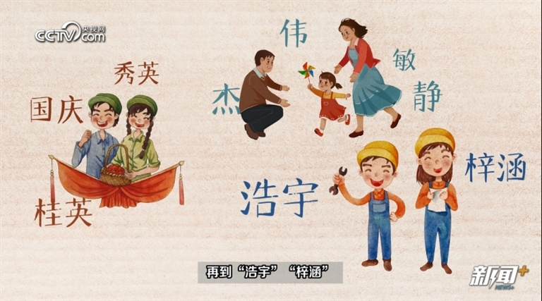 从“国庆”“秀英”“桂英”,到“伟”“敏”“静”“杰”,再到“浩宇”“梓涵”,一代父母有一代父母的追求,我们的名字也刻着时代的烙印。不变的,只有对新生命的殷切冀望。 据央视网