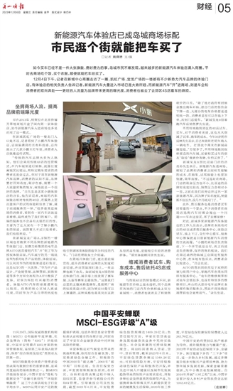 中国平安蝉联MSCI-ESG评级“A”级