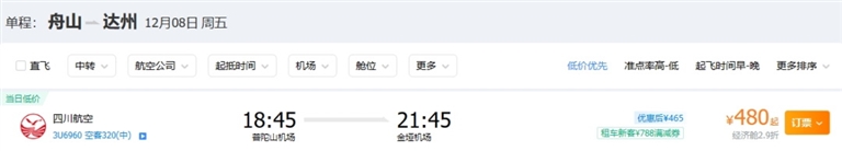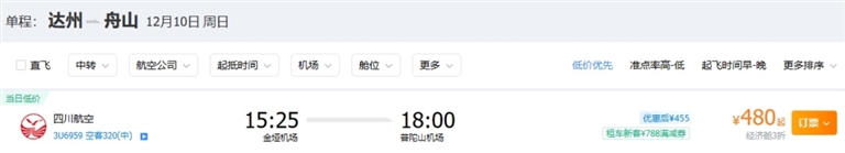 从舟山出发,年末特价航线来啦!