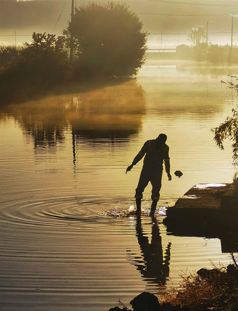 六横滚龙岙村,河边飘起的晨雾在阳光下形成一幅美丽的画面 通讯员 刘叶锋 摄