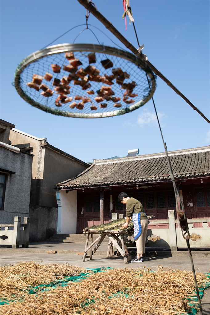 定海大沙村村民在翻晒芥菜,为腌制咸菜做准备 通讯员 虞莉莉 摄