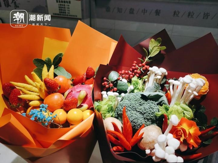最近,杭州城西的政苑农贸市场延长到晚上8点半关门。而在古荡农贸市场,每天都摆了两束别出心裁的蔬菜和水果花。