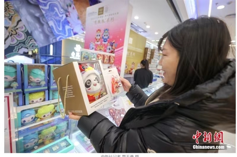 12月7日,市民在北京王府井工美大厦选购“龙墩墩”毛绒玩具和钥匙扣。当日,“冰墩墩”龙年新春特别版——“龙墩墩”系列新品在北京线下开售。中新网 图