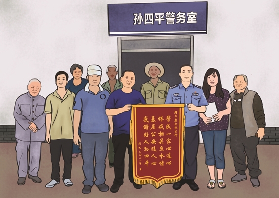 十多年来,常常暮色四合时,孙四平从盐仓派出所出发到村子,与村民唠家常,同时把警务服务送到老百姓的家门口。在这里,“有困难,找老孙”,是叉页河村3000多位村民的共识。村里的每位村民都认识老孙,“他骑着一辆警用电动车,拿着一个警务工作包,包里放着一个走访登记本。”老孙平时说得最多的一句话是:“为老百姓办事那是应该的,办得漂亮那是必须的。”