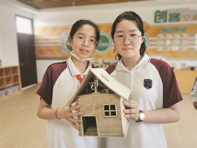 在学校的创客实验室里,记者看到了一座座小木屋。这就是赵海娜和学生们一起完成的“大项目”——迷你版“智能家居”。