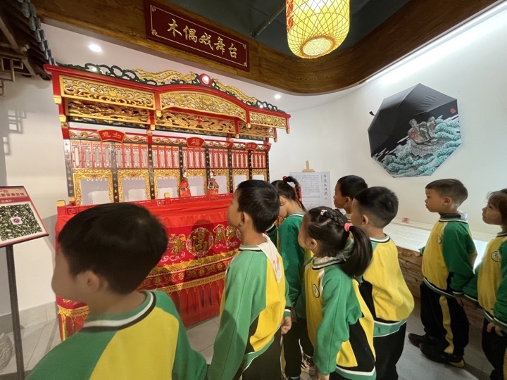 近日,普陀区城北幼儿园儿童观察团的孩子们跟随普陀区民俗文化展览馆的讲解员,开启了一场寻觅本地文化之旅。孩子们参观了普陀非遗展厅、渔文化展厅和婚俗展厅,感受了布袋木偶戏的独特韵味,探寻了“绿眉毛”帆船的航行故事,聆听了花轿船与渔家婚礼的传统故事。通讯员 翁珍琦 摄
