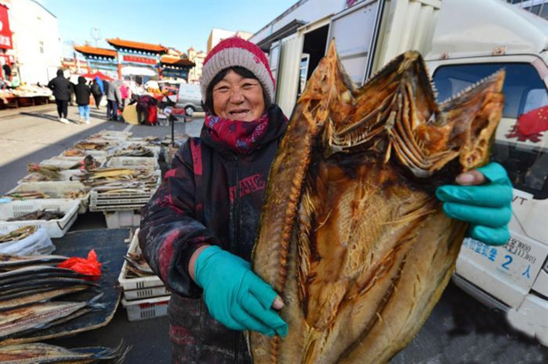12月16日,在山东省青岛市崂山区拥有百年历史的王哥庄大集开集,几十种物美价廉的干鲜鱼货摆满长街。其中,“甜晒鱼”等当地特色干鲜海产品受到“赶集”市民的热捧。据介绍 ,所谓“甜晒鱼”是青岛当地居民的一种叫法,有露天晾晒风干的意思,又以“甜”字凸显出晾晒风干海鱼的鲜美口味,鲅鱼、海鳗鱼、黄鱼等多个海鱼种类都可以用来加工“甜晒鱼”。中新网 图