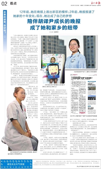 陪伴胡译尹成长的晚报成了她和家乡的纽带