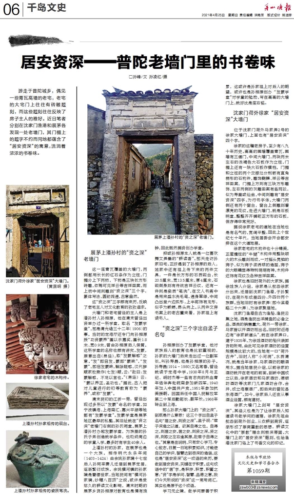 听闻改版后的晚报仍会保留文史版面,王立也表达了自己对晚报的祝福与期待,“我个人认为文史有着以文存史的作用,而报纸作为一种载体,不但有宣传的作用,其本身在一定程度上能够对历史予以记录。故而在报纸上呈现文史,能让市民更好、更深入地去了解关于舟山的历史文化,提升舟山历史、舟山名人等效应,为打造舟山这座历史悠久的文化名城奠定坚实的基础。”
