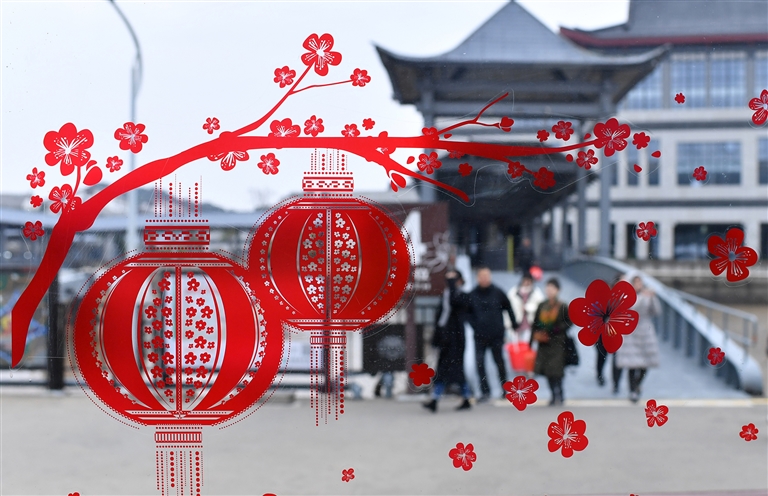 蜈蚣峙码头的游客赶着回家过节 记者 沈磊 摄