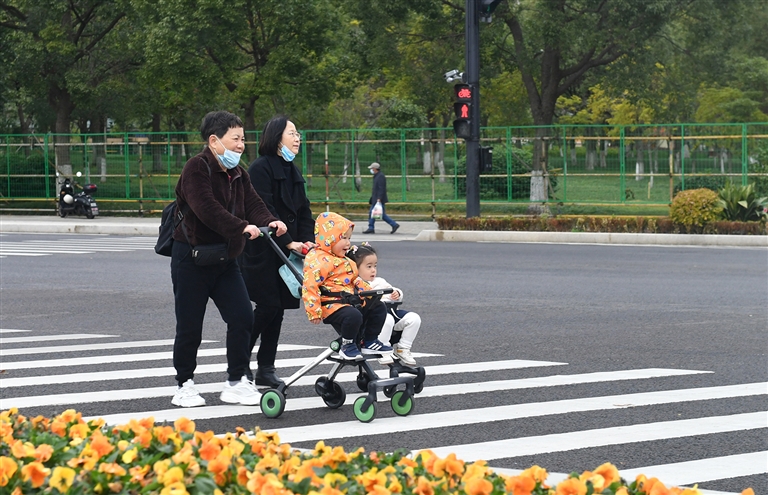 市民穿上了厚厚的冬衣 记者 沈磊 摄