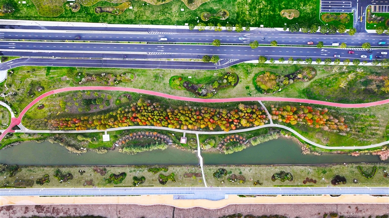 舟山市新城滨海绿化景观带,水杉色彩斑斓,景美如画 记者 陈永建 摄