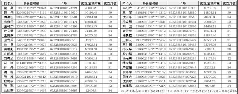 注:透支本息截止时间2023年12月15日,本公告刊登于2023年12月23日《舟山晚报》第7版