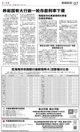 定海海洋农商银行逾期信用卡/贷款催讨公告