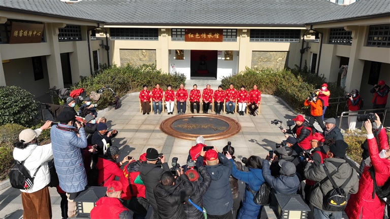 近日,市老干部摄影艺术研究会组织47名摄影志愿者来到岱山县高亭镇渔山村,为沈追女、王善定等5对夫妻拍摄金婚照。现场一片喜庆。 记者 陈永建 摄