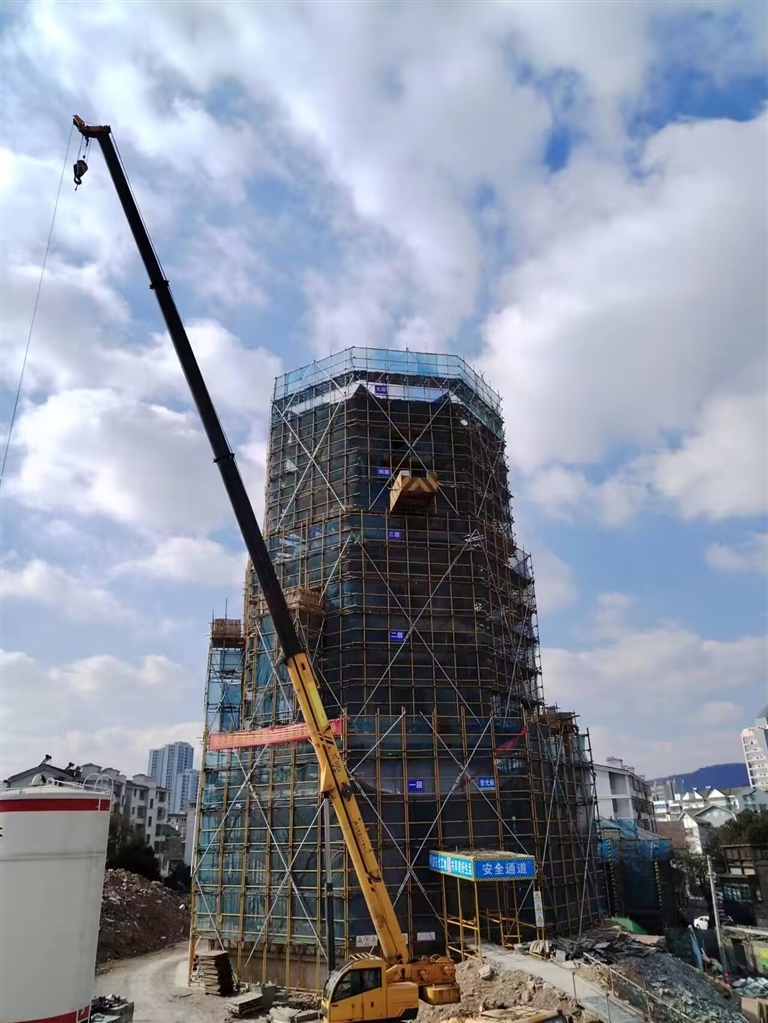 本报讯 位于定海老城区东大街与环城东路交界的奎光阁(高38.31米)业已结顶,其是定海文房四宝园的主体建筑。