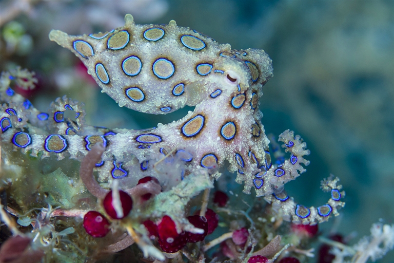 这种章鱼不会主动攻击人类,除非它们受到很大的威胁。