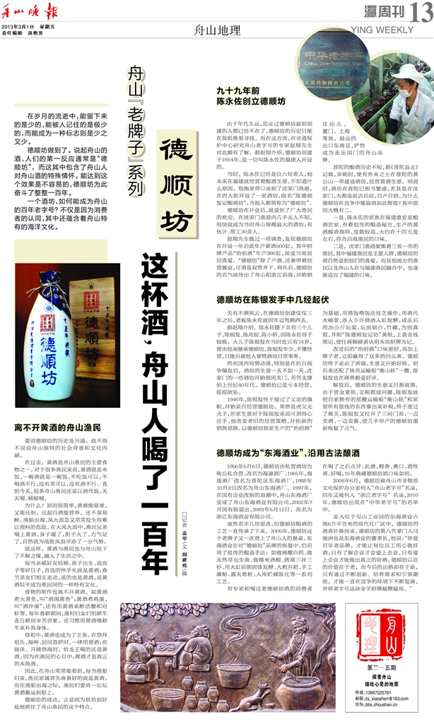 2005年,东海酒业重新打造复原德顺坊老字号、老品牌,借此契机,开始了与《舟山晚报》近20年的合作。