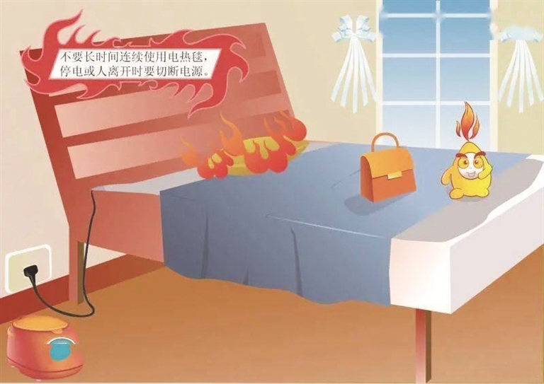 3、应选购符合安全要求的合格电取暖产品;电热毯不要长时间通电,不可折叠使用,发现电源线发热、发软时应立即停止使用。