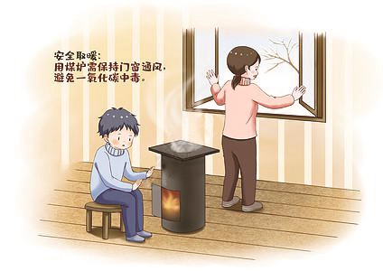 5、煤炉取暖要安装烟筒,周边远离可燃物,室内注意通风,防止一氧化碳中毒。