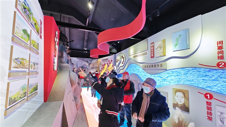 近日,位于岱山县高亭镇渔山村的红色传承馆,游客正在讲解员的带领下学习参观。据悉,该展馆设渔山村红色历史和整岛搬迁历史两大展区,今年以来,共接待游客280批次,超万人。