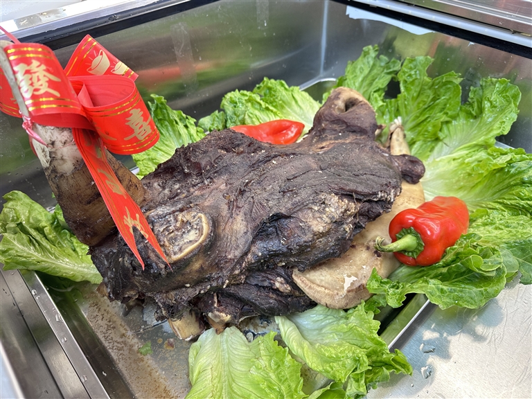 店里还有整只大牛头,卤制手续繁琐,要想熟烂入味,靠的是三分煮七分焖,火候是关键。牛头入锅,以大火烧开后转小火慢炖,回头还要焖上好些时间。