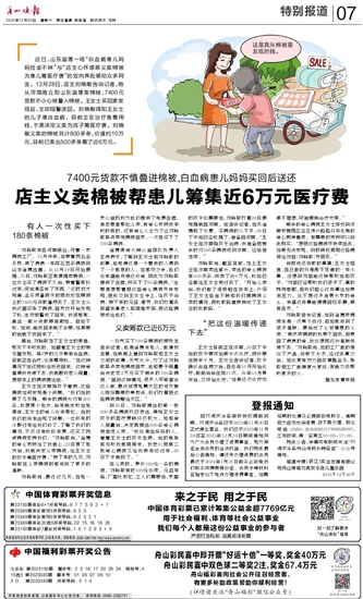 店主义卖棉被帮患儿筹集近6万元医疗费