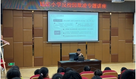 “什么是校园欺凌”“遭遇校园欺凌如何处理”……近日,定海区环南派出所所长叶奇超受邀走进廷佐小学,给该校三至六年级部分学生作了以“反校园欺凌”为主题的讲座。叶奇超结合现实案例,联系生活实际,告诉学生:面对校园欺凌要及时寻求家长、老师、警察的帮助,用正确的方式处理同学之间的矛盾。