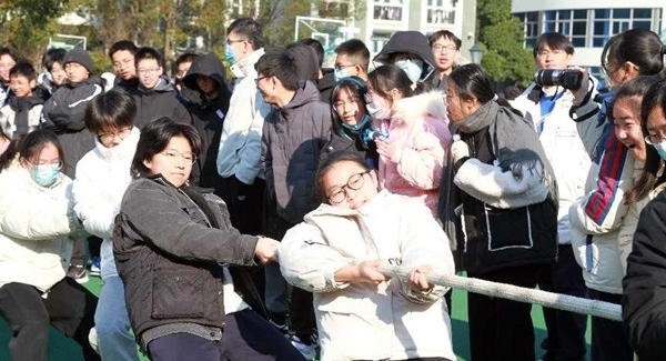 近日,定海一中高一、高二全体师生齐聚学校操场,上演了一场精彩的“‘绳’连众心”主题拔河比赛。学生们青春勃发的身影和一浪高过一浪的呐喊加油声,成为校园最靓丽的冬日胜景。通讯员 肖遥 费珍倩 摄