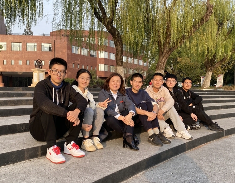 胡邢智和高中班主任邹碧艳老师及同学们的合影(右三为胡邢智)