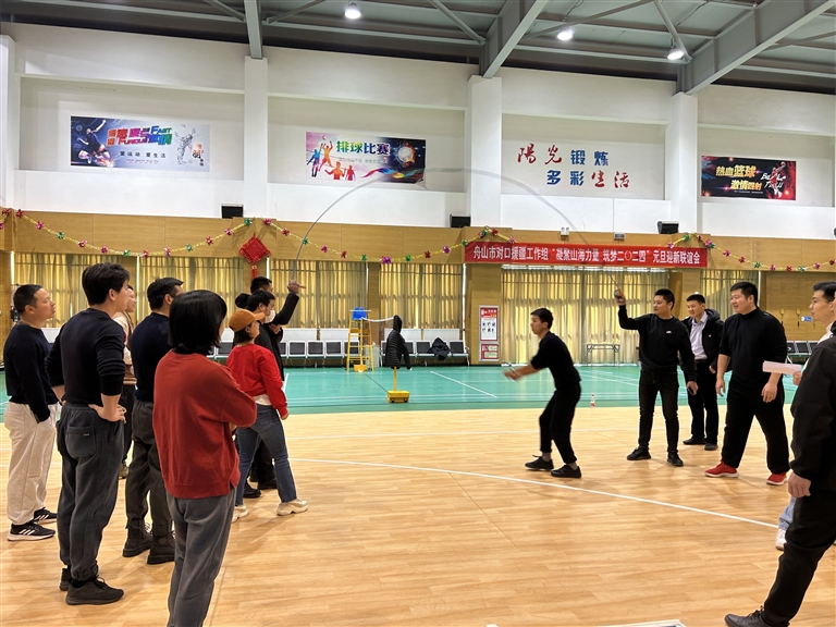 联谊活动上,来自舟山的31位援疆干部人才欢聚一堂,以小组为单位进行趣味游戏竞赛,大家被分成2个小队,分别为海之队、山之队,进行“小李飞镖”“投篮我最行”“众人一条心”等6个项目的激烈比拼。最终,海之队胜出。 通讯员 周烨 摄