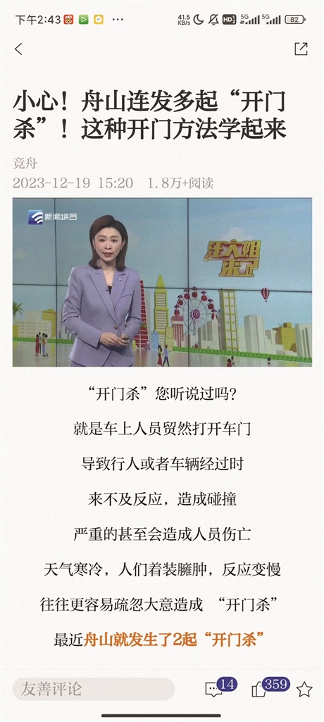 近日,舟山连续发生2起“开门杀”事件,竞舟客户端进行了报道,提醒司机和乘客务必重视这类交通安全问题。