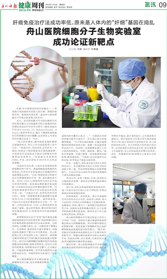 舟山医院细胞分子生物实验室成功论证新靶点