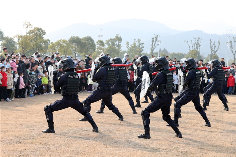 1月7日上午,舟山市公安局在市综合警务训练基地举行2024年警营开放日活动,警民互动共迎第四个中国人民警察节。