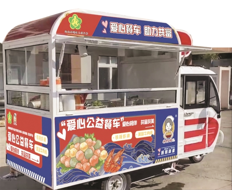 “自在星—爱心餐车”助残服务项目,由市残联联合舟山市舟昇食品有限公司等爱心单位推出。项目启动以后,由残联组织残疾人报名,后期由舟昇食品公司解决上岗培训。通过让残疾人朋友售卖虾滑、鱼丸等产品实现在家门口就业,从而增加收入,过上更加体面的生活。