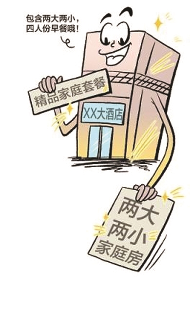 风景美图搭配着“超值、特惠”的套餐价格,寒假将近,层出不穷的酒店产品纷纷“热推”,令人眼花缭乱。细看这些套餐,主打家庭亲子游的,多以“两大一小”作为人数限制,让一些二孩家庭犯了难。“总不能留一个孩子不带,超出的‘一小’怎么办呢?”