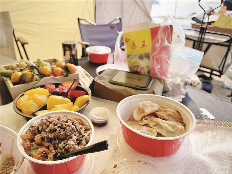 午休时间,朋友们从各自的钢筋水泥奔向帐篷奔向海边,带着各自的外卖,其中就有温州糯米饭。带过来的朋友也是来自温州的新舟山人,经过她的数次点餐,这家糯米饭的味道与她记忆中的老家味道无异,欣喜之余,便极力推荐给身边的朋友。